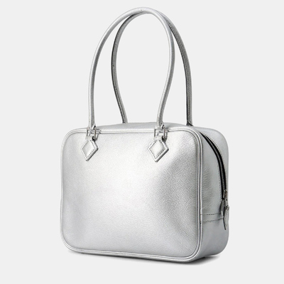 The Hermès Plume Olympic Limited Mini in Silver Chevre Myzore Goatskin is a rare celebration of elegance and exclusivity. Its compact, fluid silhouette highlights the supple texture of goatskin, while the shimmering silver tone adds a refined, luminous presence. As a limited edition, this piece embodies collectible artistry, balancing understated sophistication with Hermès’ renowned craftsmanship. Perfectly proportioned and effortlessly chic, the Plume Mini is a testament to the maison’s mastery of both form and material.