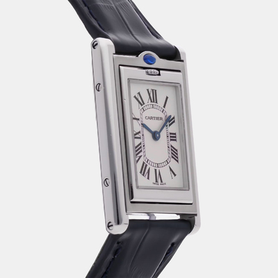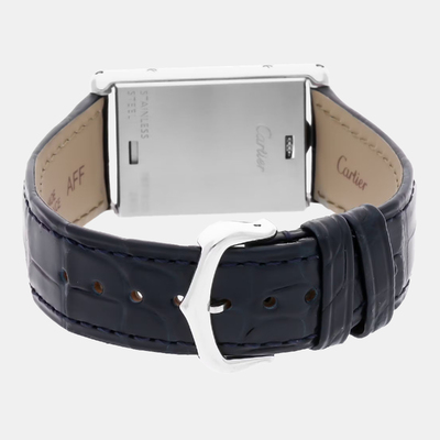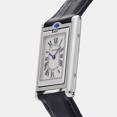 Cartier delivers effortless sophistication with the Tank Basculante, a rare pre owned treasure crafted in stainless steel with a clean silver dial. Its iconic 24 mm design and reliable quartz movement make it a versatile luxury accessory for those who appreciate classic Parisian style and investment worthy craftsmanship.