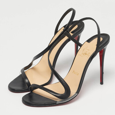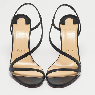 Christian Louboutin Black Leather Rosalie Slingback Sandals Size 39 1223283 (чёрный, lpn31009788)