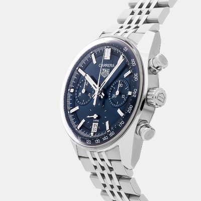 Celebrate racing heritage with the Tag Heuer Carrera Chronograph, a pre owned classic featuring a vibrant blue dial and streamlined 39 mm stainless steel case. Powered by a precision automatic movement, this luxury sports watch blends iconic design with expert Swiss engineering for a truly collectible timepiece.