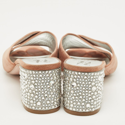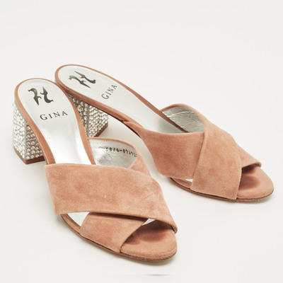 Gina Beige Suede Cross Strap Crystal Embellished Block Heel Slide Sandals Size 39.5 1223129 (бежевый, lpn31009812)