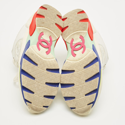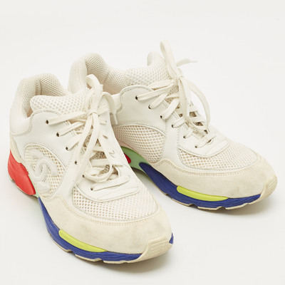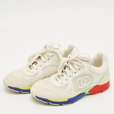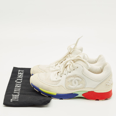 Chanel White Fabric and Suede CC Lace Up Sneakers Size 37 1223116 (белый, lpn31009813)