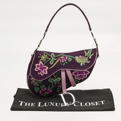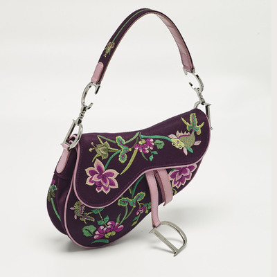 This limited edition Dior Saddle Bag is a rare collector’s piece, crafted in silk with intricate floral and koi embroidery in gorgeous shades. The iconic asymmetrical shape becomes a canvas for artistry, marrying heritage design with exquisite detailing.