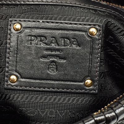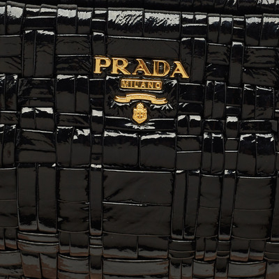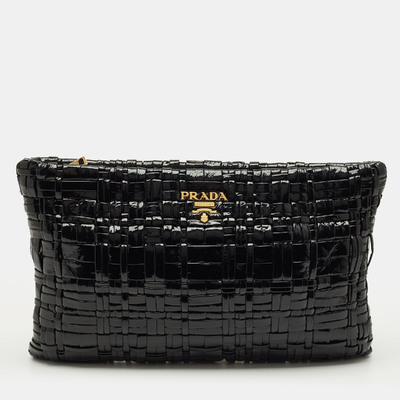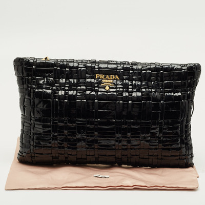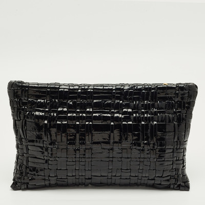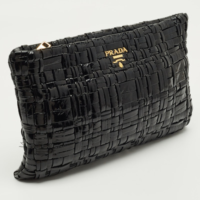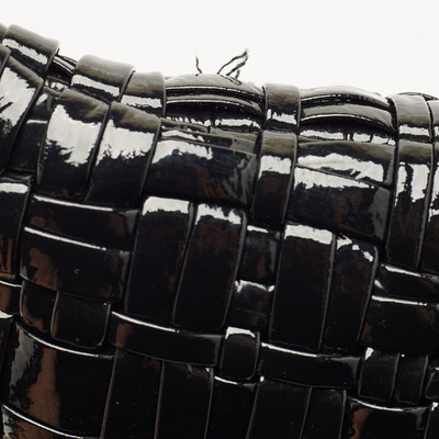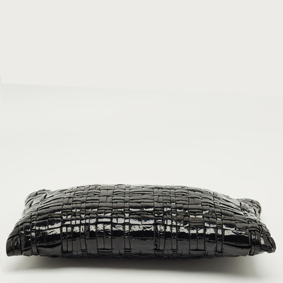 Prada’s artistry comes through in this slim clutch, crafted from glossy black patent leather using an intricate woven design. Sleek yet dimensional, it’s a piece that balances modern polish with the house’s revered craftsmanship.