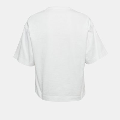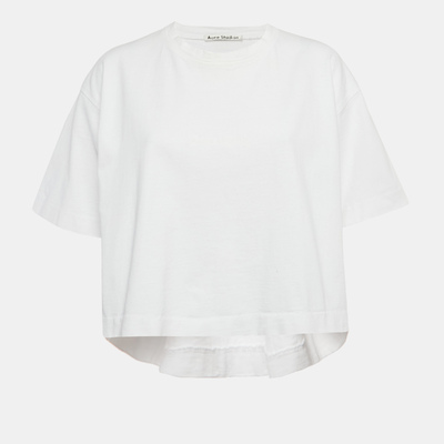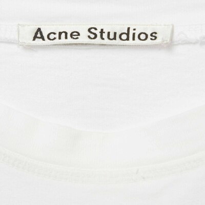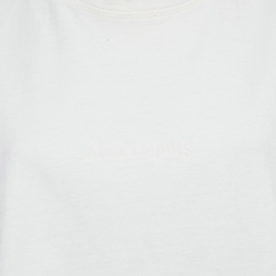 Acne Studios’ Cylea T shirt in white cotton features an embossed logo that’s understated yet distinctive. The clean cut and soft fabric embody the brand’s Scandinavian minimalism. Style with wide leg trousers or tucked into skirts for a crisp, modern base.