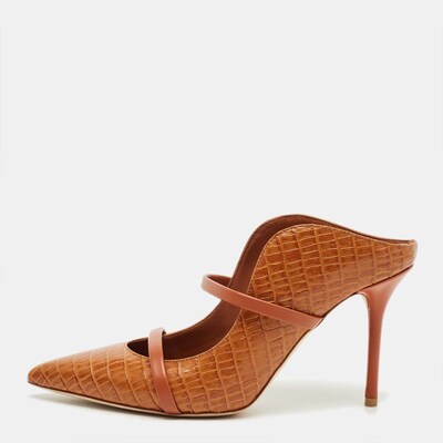 Malone Souliers Brown Croc Embossed Leather Maureen Mules Size 38 1222200 (коричневый, lpn31009841)