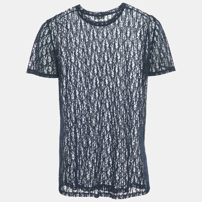 Dior Homme Navy Blue Oblique Jersey Sheer T-Shirt M 1221679 (lpn31009845)