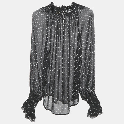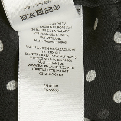 Classic yet playful, this chiffon blouse by Polo Ralph Lauren is adorned with delicate white polka dots. Light and airy, it drapes beautifully for office or weekend styling. A wardrobe staple with vintage charm.
