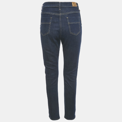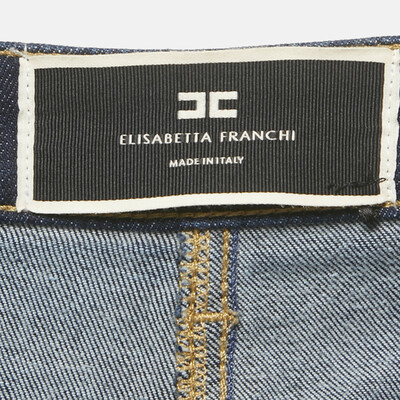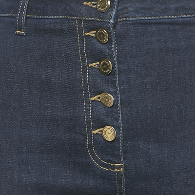 Designed for a sleek silhouette, these Elisabetta Franchi skinny jeans come in dark blue denim with chic button accents. The mid rise fit enhances the figure with effortless elegance. A refined twist on classic denim.