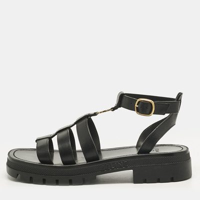 Celine Black Leather Clea Triomphe Strappy Gladiator Sandals Size 40 1223098 (чёрный, lpn31009868)