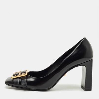 Versace Black Leather Block Heel Pumps Size 38.5 1222925 - 1