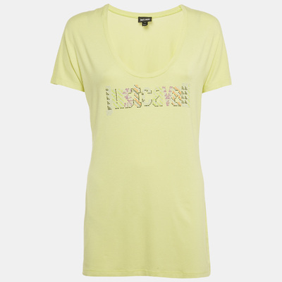 Just Cavalli Lime Green Logo Embellished Jersey Round Neck T-Shirt XL 1222903 - 1
