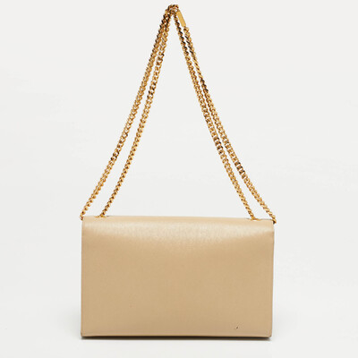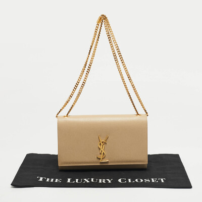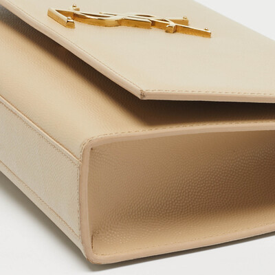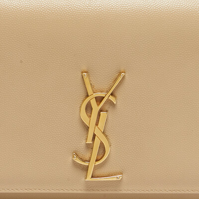 An evening begins with the soft sweep of beige leather and the gleam of a gold tone YSL logo at the flap. The Saint Laurent Kate slips over the shoulder with its slender chain, carrying only what matters most. Luminous, luxurious, and ready for wherever the night leads.
