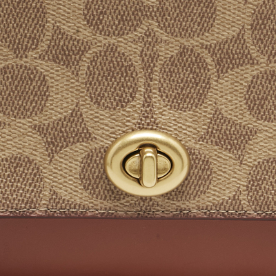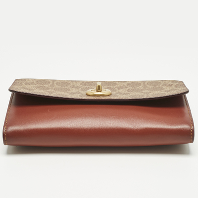 Coach’s Marlow clutch is crafted in signature coated canvas with brown leather, its fold over shape keeping essentials neatly tucked away. The slim design works in hand for evenings or slips into a tote by day, carrying the brand’s classic monogram pattern with luxe.