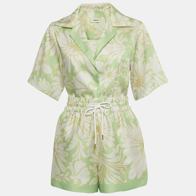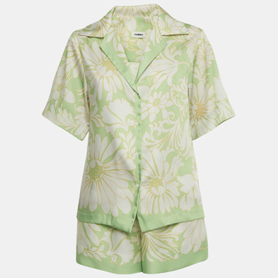 Sandro Green Floral Print Satin Top & Shorts Set XS 1220734 (зелёный, lpn31009912)