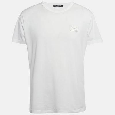 Dolce&Gabbana White Cotton Logo Plaque T-Shirt L 1222922 - 1