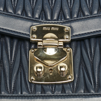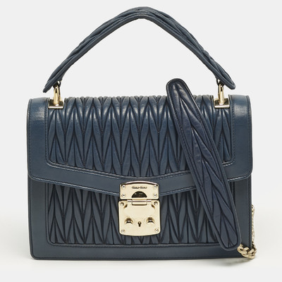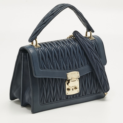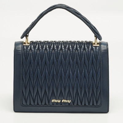 Miu Miu Navy Blue Matelassé Leather Pushlock Flap Top Handle Bag 1222896 (lpn31009925)