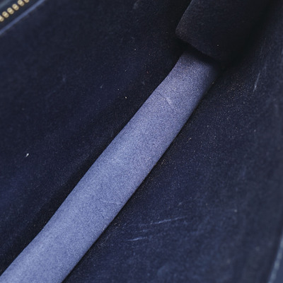 Defined by Miu Miu’s iconic matelassé leatherwork, this navy blue bag adds dimension and depth to a compact top handle design. Finished with a push lock clasp, it channels both youthful energy and classic craftsmanship in a way unique to the house.