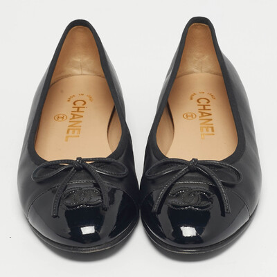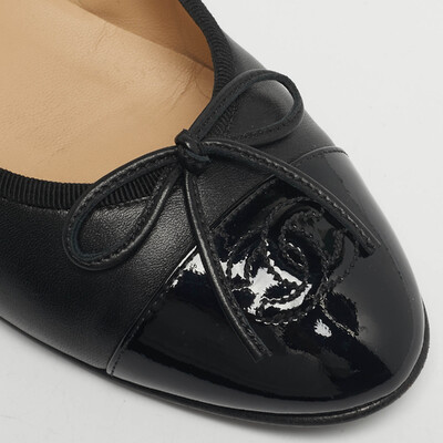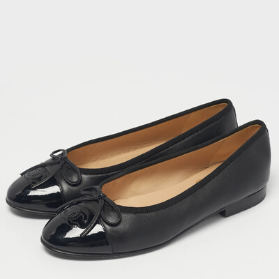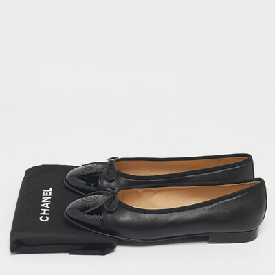 Chanel Black Leather CC Cap Toe Ballet Flats Size 36 1223237 (чёрный, lpn31009953)