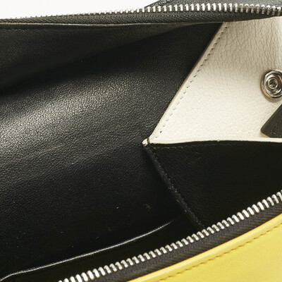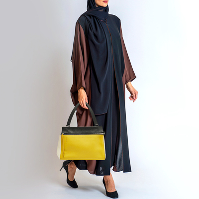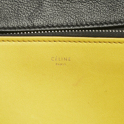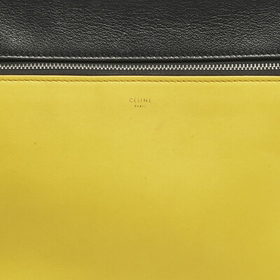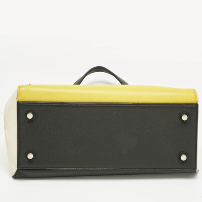 The Celine Small Edge bag brings color into motion—yellow, white, and black leather meeting in sharp contrast. Sized for daytime use, it carries neatly by the top handle and holds presence at work or in the city. The long zip running across the top makes reaching inside quick, even on the move.