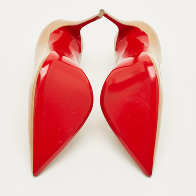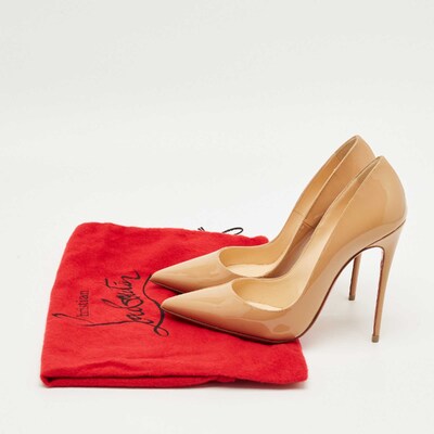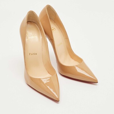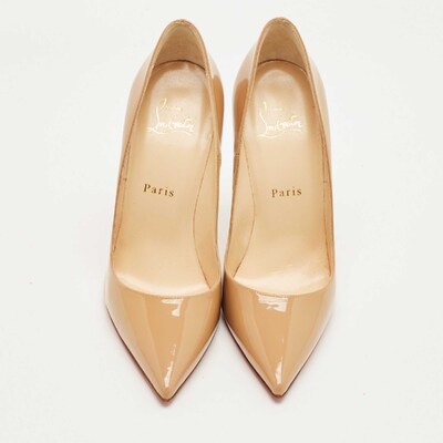 Christian Louboutin’s So Kate pumps in beige patent leather epitomise the house’s sculpted heel and sharp pointed toe. Their neutral hue elongates the leg and complements almost any palette. A wardrobe staple for polished daywear and after dark allure alike.