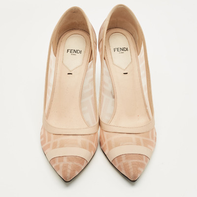 Fendi Light Beige/Brown Zucca Mesh and Leather Colibri Pointed Toe Pumps Size 38 1223108 (бежевый, lpn31009961)