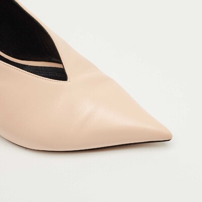 Sleek and minimal, these Celine pumps in beige leather feature a flattering V neckline and pointed toes. Their understated elegance makes them a wardrobe essential. Perfect for both office and formal occasions.