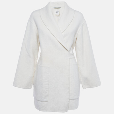Hermes White Cashmere Wrap Over Mid Length Coat M 1221624 (белый, lpn31009988)