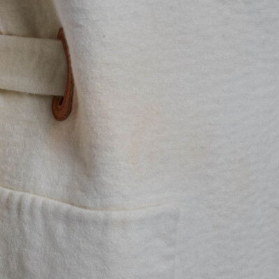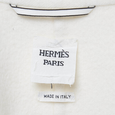 This authentic Hermès coat is crafted from pure white cashmere, wrapping across the body in a mid length silhouette. Minimal yet luxurious, it speaks to the house’s dedication to impeccable materials and timeless form.