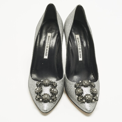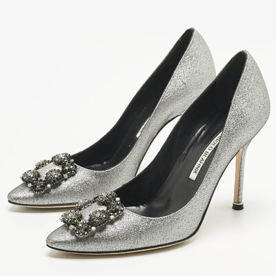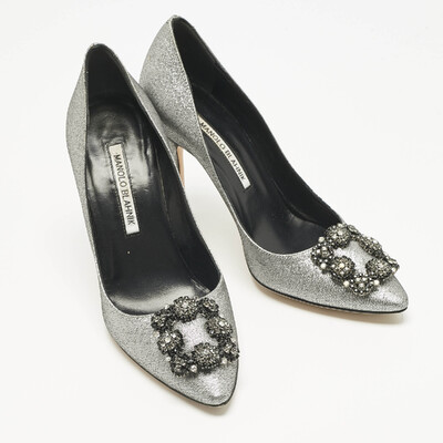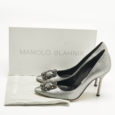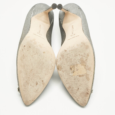 Manolo Blahnik Silver Lurex Fabric Hangisi Pumps Size 37.5 1223267 (lpn31010000)