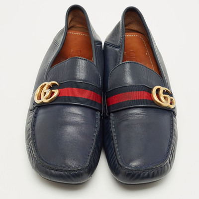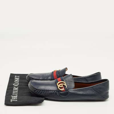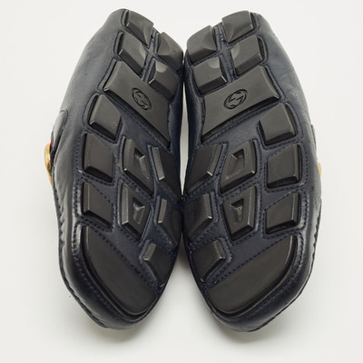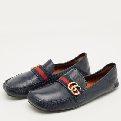 Gucci’s driver loafers in navy blue leather feature the house’s Web stripe and GG Marmont hardware across the vamp. The flexible sole and hand stitched finish nod to its driving shoe heritage while maintaining a polished look. Pair with chinos or linen trousers for effortless Italian style.