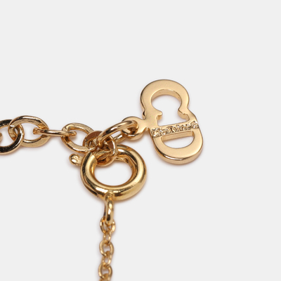 Adorn yourself with the epitome of elegance through this exquisite gold tone Dior necklace. Showcasing a dazzling CD logo pendant embellished with shimmering rhinestones, it embodies Diors timeless style and sophistication. Crafted with meticulous attention to detail, this accessory captures vintage charm and modern allure.