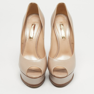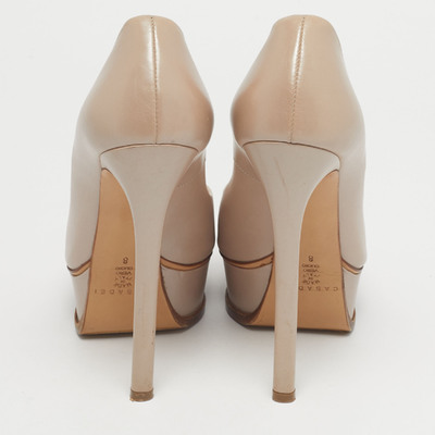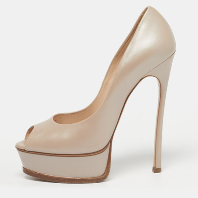 With these stunning pumps, you are all set to elevate your style for the day. These pumps from Casadei are created using beige leather on the exterior, with peep toes, platforms, and heels accentuating their gorgeous silhouette. Flaunt your exceptional styling choices by wearing these pumps.