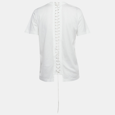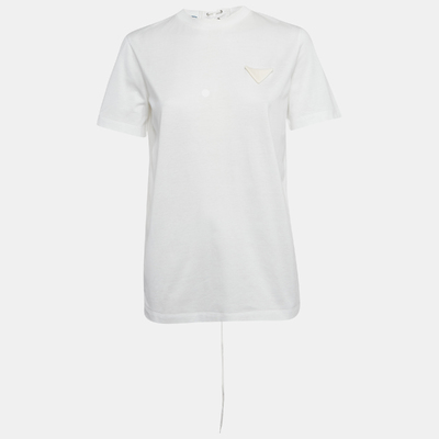 Prada White Triangle Appliqué Cotton Crisscross Detail T-Shirt M 1222533 - 1