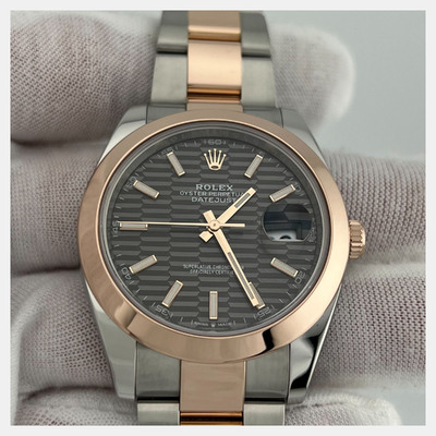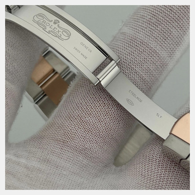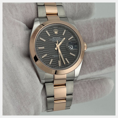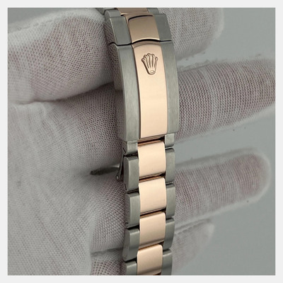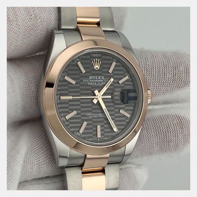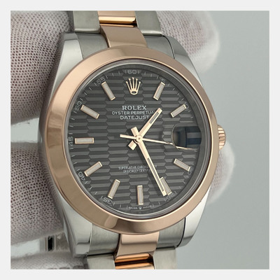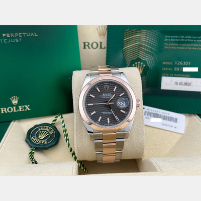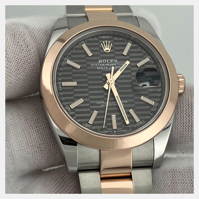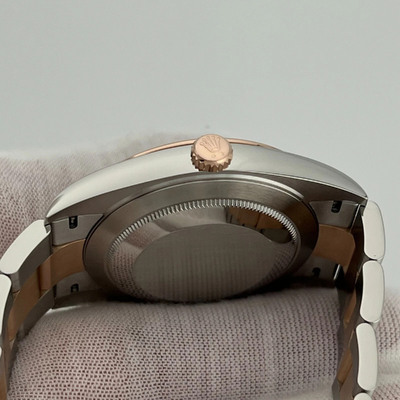 Combining stainless steel and 18k rose gold, this Datejust 126301 presents a refined rhodium dial in a 41mm case. Its automatic movement ensures smooth performance, while the two tone design adds contrast and versatility.