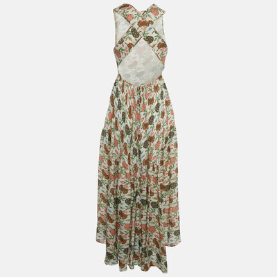 Tory Burch Ivory Floral Print Silk Asymmetric Hem Kendall Maxi Dress S 1222172 - 1
