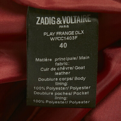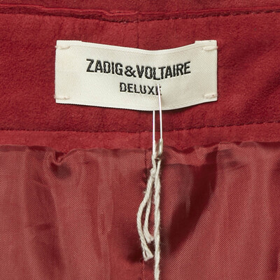 Bold and free spirited, these Zadig and Voltaire trousers feature soft red suede with playful fringe detailing. The relaxed silhouette adds effortless rock chic flair. A standout statement for fashion forward wardrobes.