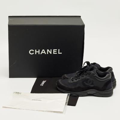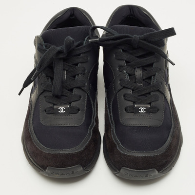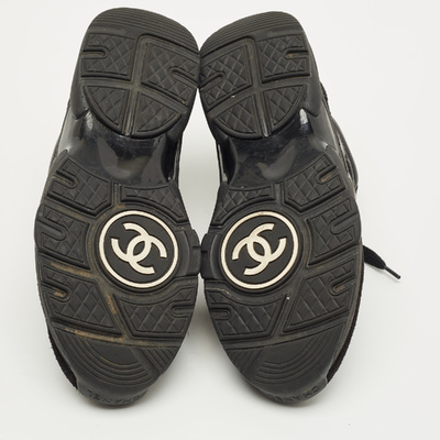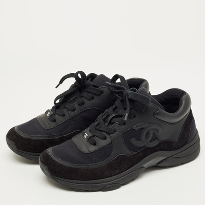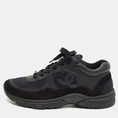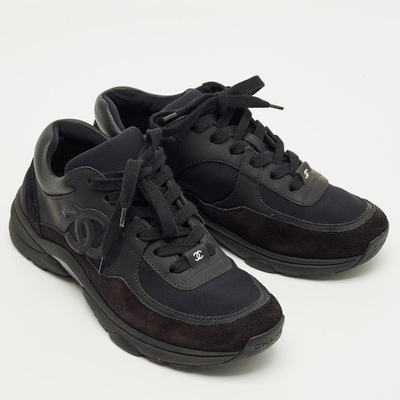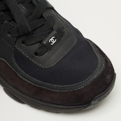 Chanel Black Neoprene and Suede CC Low Top Sneakers Size 37 1223142 (чёрный, lpn31010052)