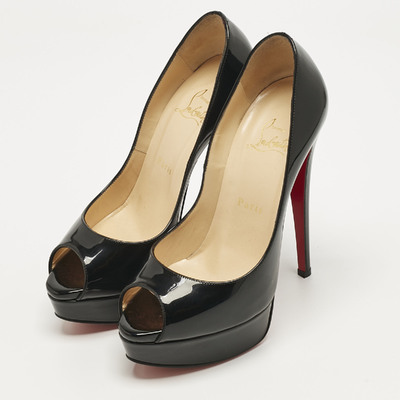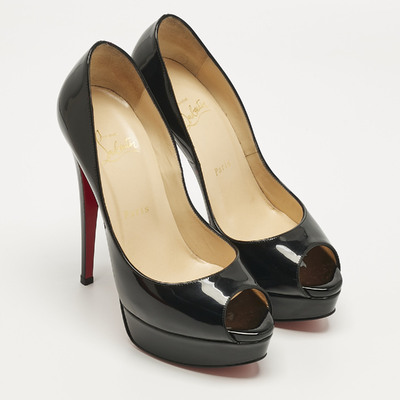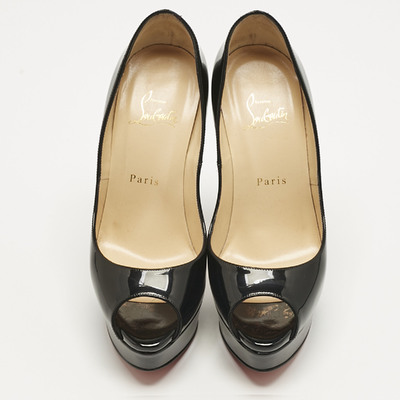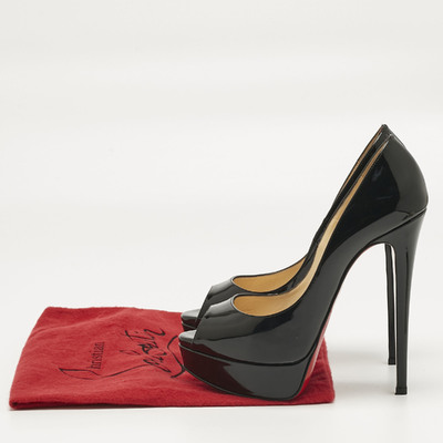 Christian Louboutin Black Patent Leather Lady Peep Platform Pumps Size 37.5 1223087 (чёрный, lpn31010057)