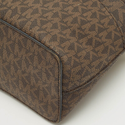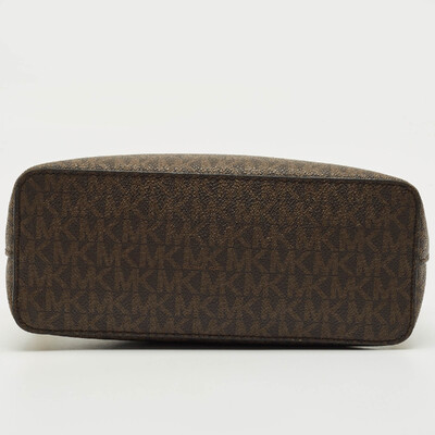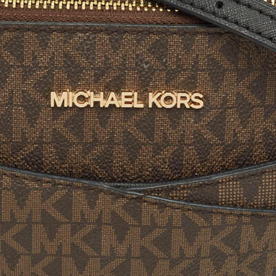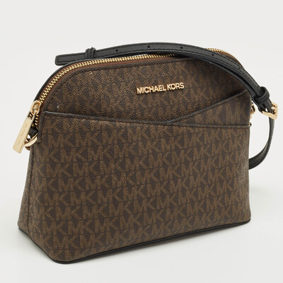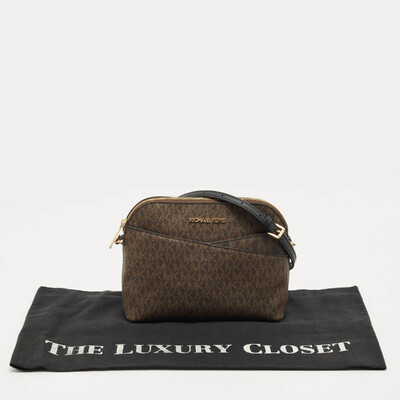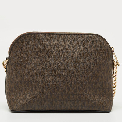 Structured in signature coated canvas, this preloved Michael Kors crossbody combines dark brown tones with clean lines. The dome shape offers a versatile carry option for everyday use.