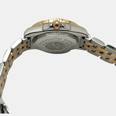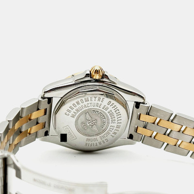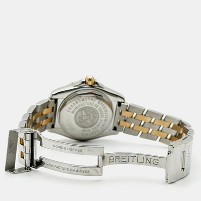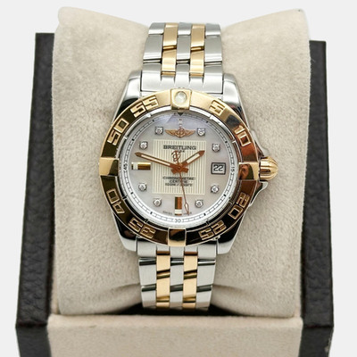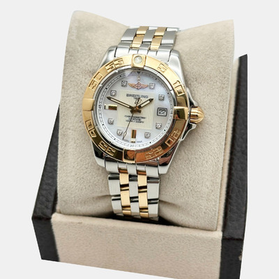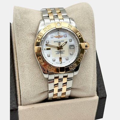 The Breitling Galactic C71356 Quartz 32 mm is a refined expression of feminine sophistication. Its stainless steel case, accented with 18K rose gold, frames a luminous white mother of pearl dial set with sparkling diamonds, creating a harmonious blend of elegance and luxury. Designed for modern versatility, the watch combines precise quartz movement with a graceful, polished aesthetic. A statement of timeless glamour and technical excellence, the Galactic is both a functional timepiece and a striking accessory.