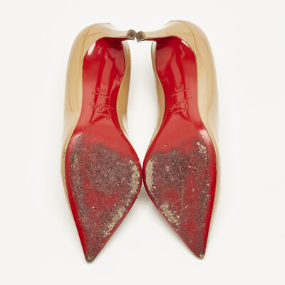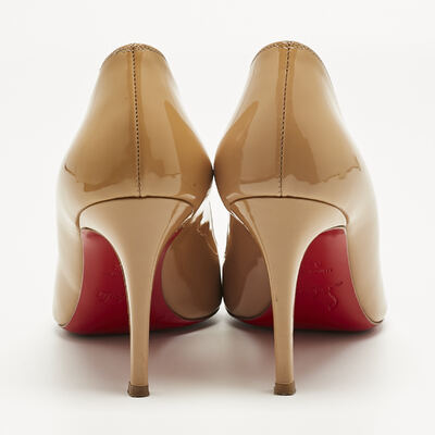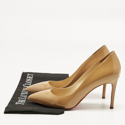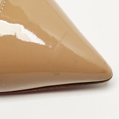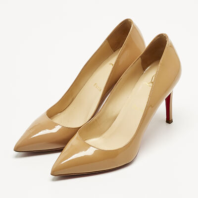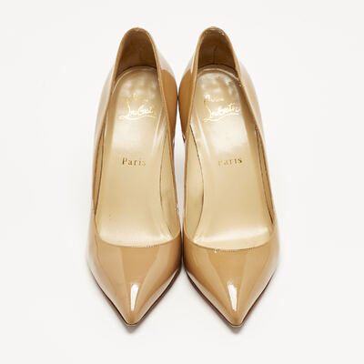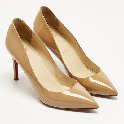 The Pigalle Follies in glossy beige patent leather deliver instant polish. Their sharply pointed toe and slender stiletto heel are counterbalanced by the warmth of the neutral tone, making them endlessly versatile. A Louboutin signature, they offer quiet drama beneath their gleaming surface.