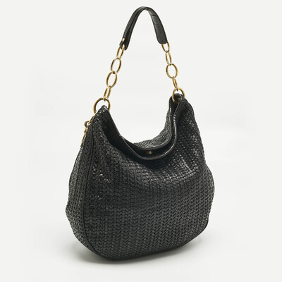 Dior Black Woven Leather Lady Dior Soft Hobo 1223189 (чёрный, lpn31010089)