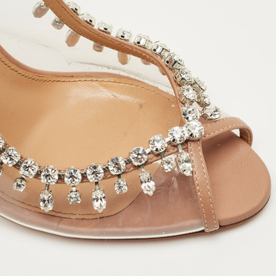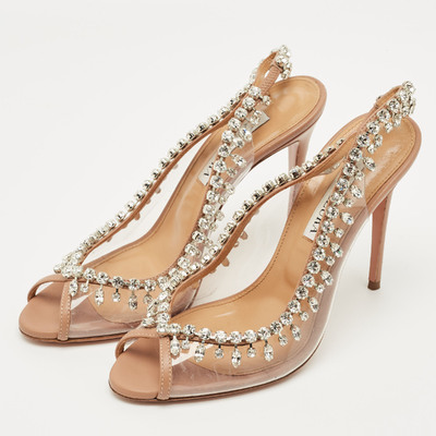 Aquazzura Beige Leather and PVC Crystal Embellish Temptation Peep Toe Pumps Size 37 1223113 (lpn31010092)