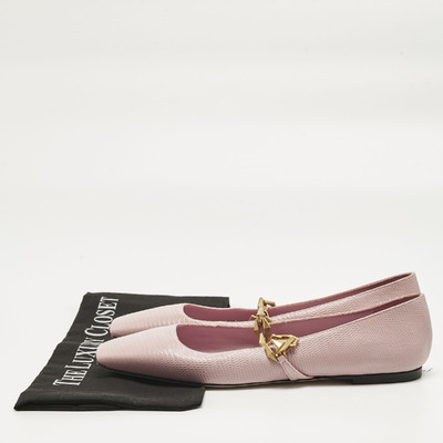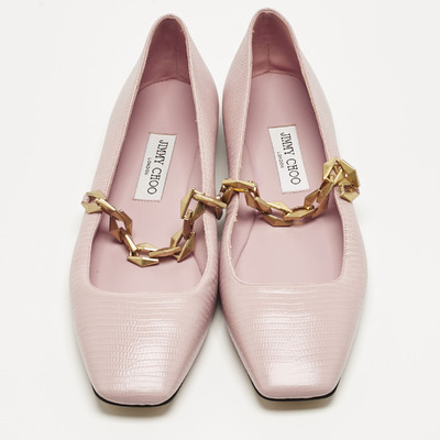 Jimmy Choo Pink Lizard Embossed Leather Diamond Tilda Ballet Flats Size 40 1223048 - 1