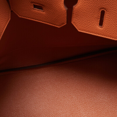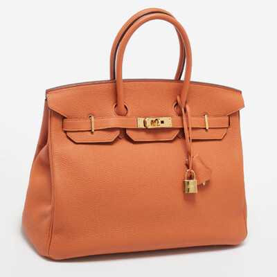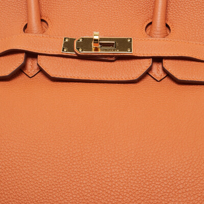 Orange, a key element in the Hermès universe, is brought to life in this authentic Birkin 35. Crafted from Togo leather and enriched with warm gold plated hardware, it captures the house’s heritage hue in a silhouette that represents the pinnacle of modern luxury.