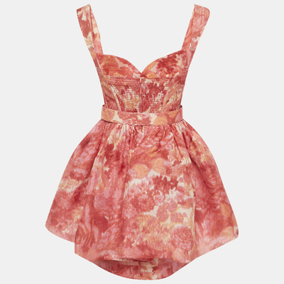 Zimmermann Pink Floral Printed Linen & Silk Belted Mini Dress XS 1222239 (розовый, lpn31010121)