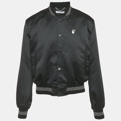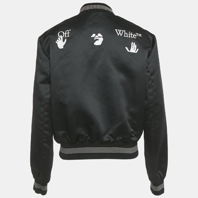 Off-White Black Logo Print Synthetic Bomber Jacket L 1221044 (чёрный, lpn31010127)