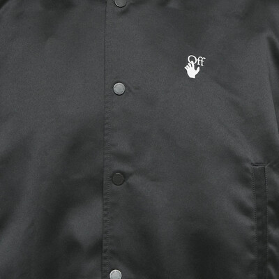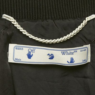 This Off White bomber jacket takes a classic silhouette and updates it with the brand’s signature graphic edge. Crafted in black with logo print accents, it embodies the mix of utility and streetwear luxury that defines the label.