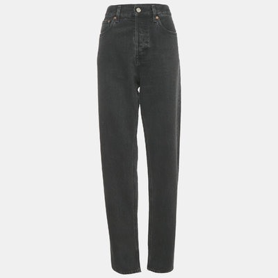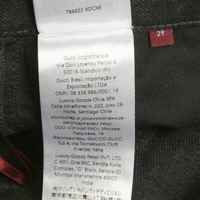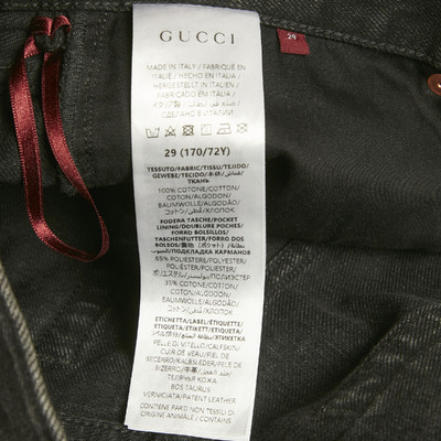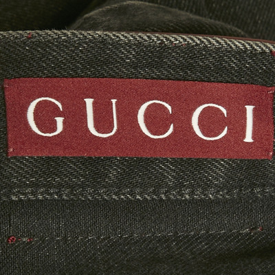 Channel retro cool with these Gucci 90’s inspired straight leg jeans in dark grey denim. The structured fit offers timeless appeal with a modern edge. Effortlessly versatile for casual or dressed up looks.